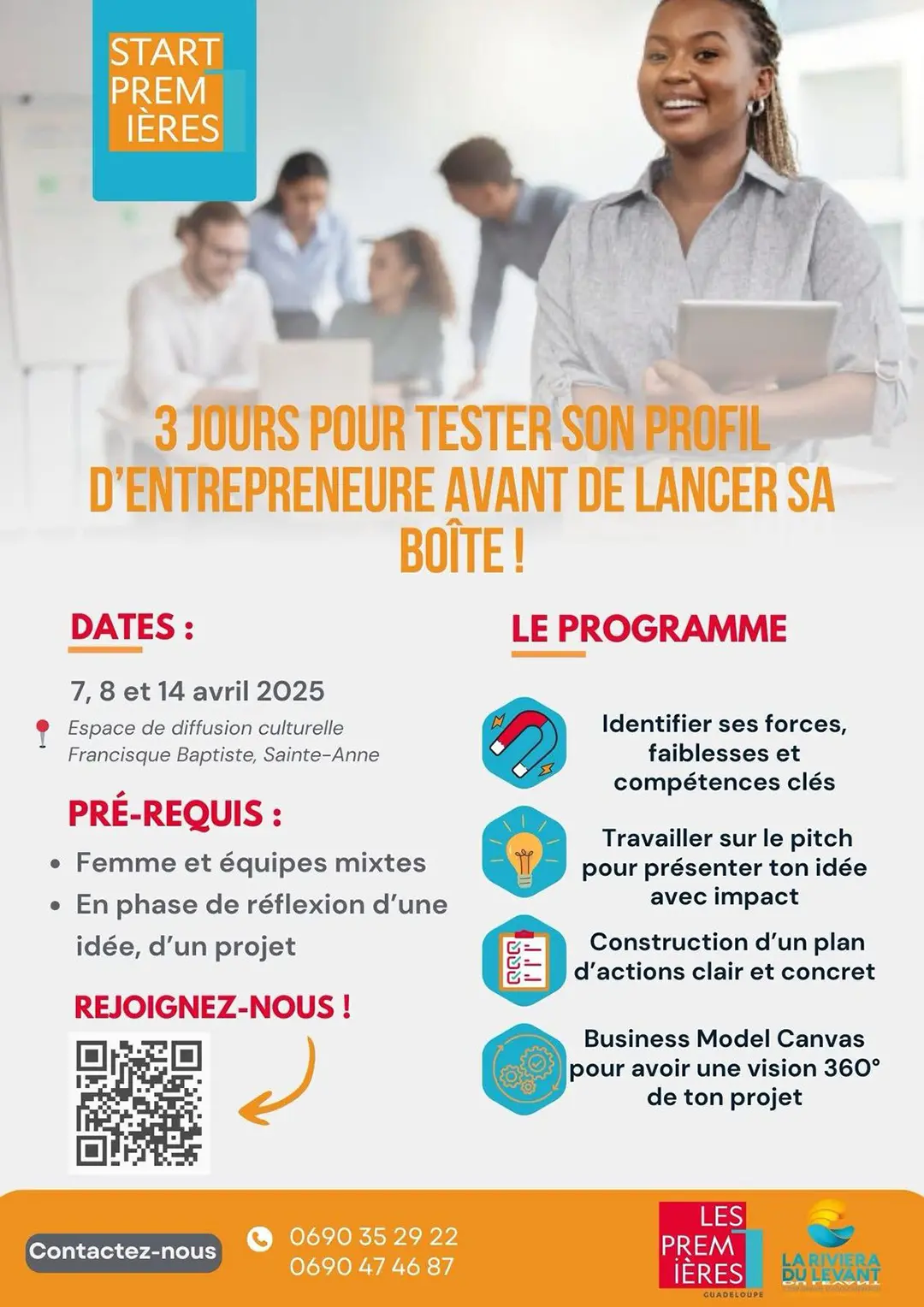 La CARL, en partenariat avec Les Premières de Guadeloupe, organise trois jours d’ateliers immersifs pour encourager les femmes du territoire à tester leur profil d’entrepreneure et structurer leur projet avant de se lancer !